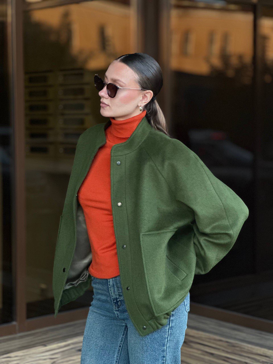 Полупальто бомбер (Зеленый, 42р.)