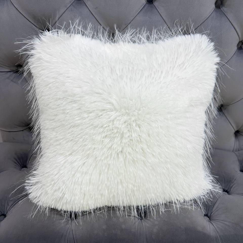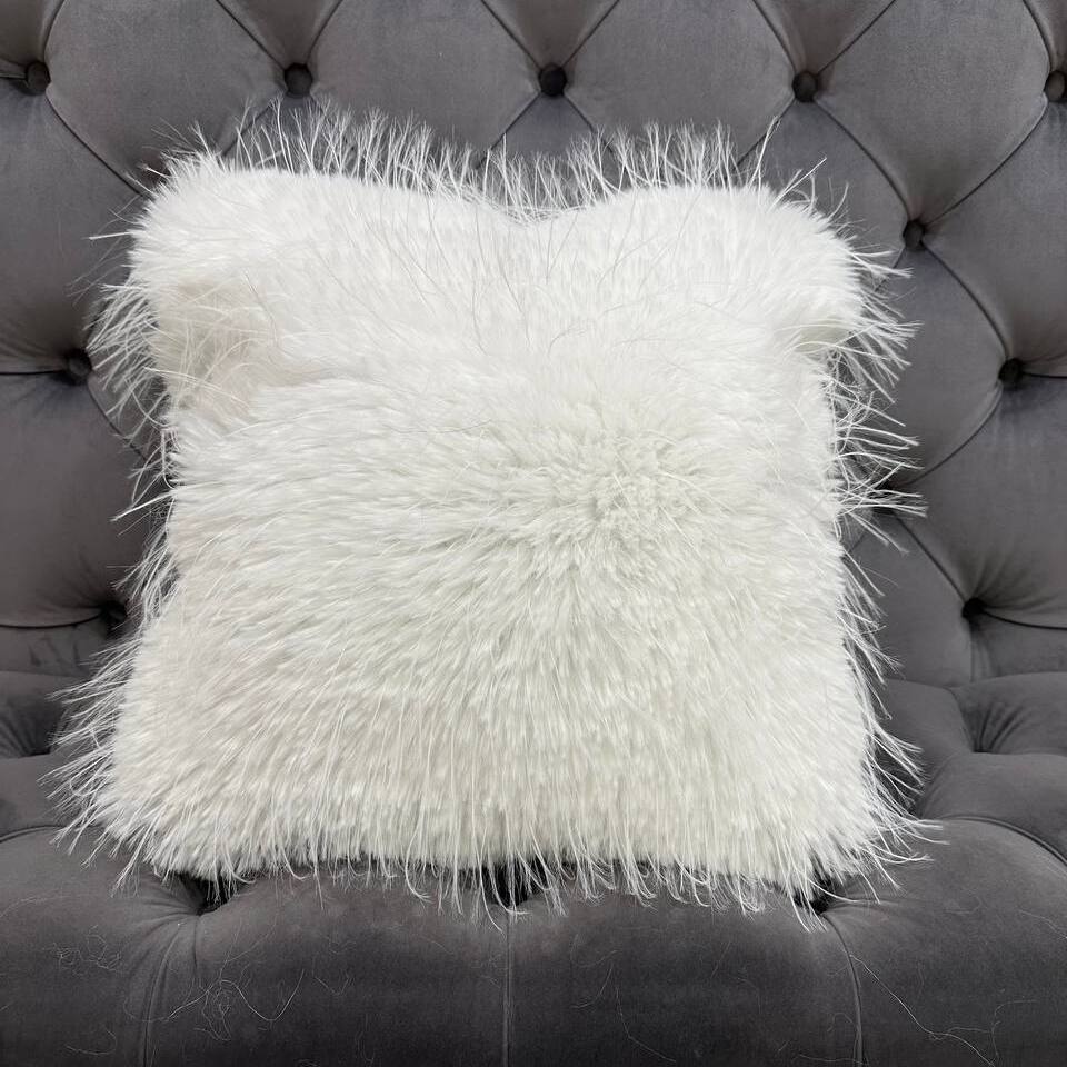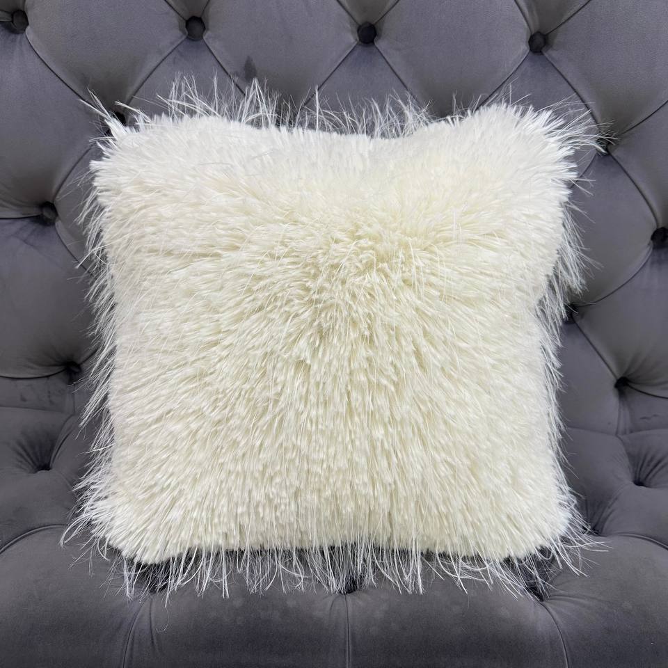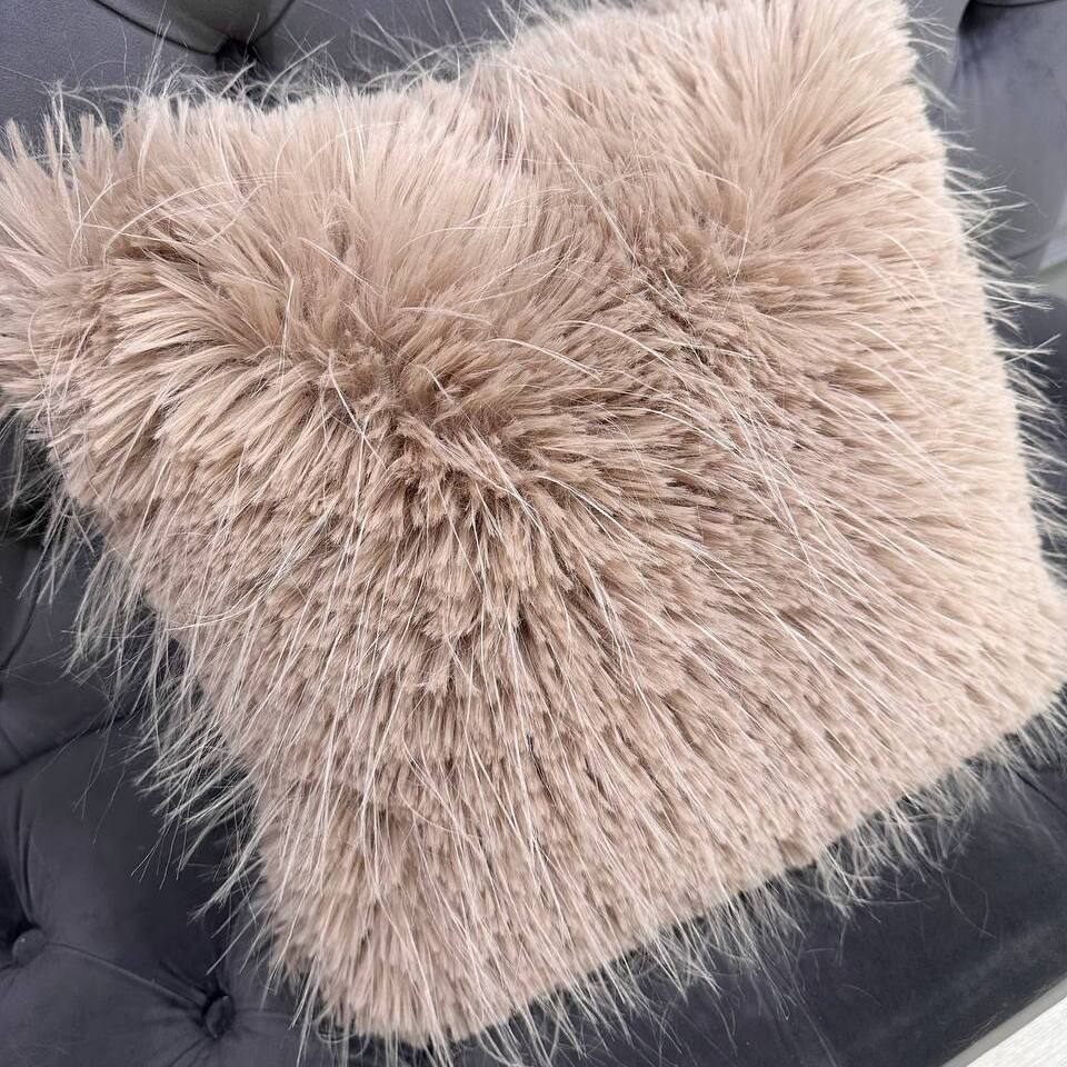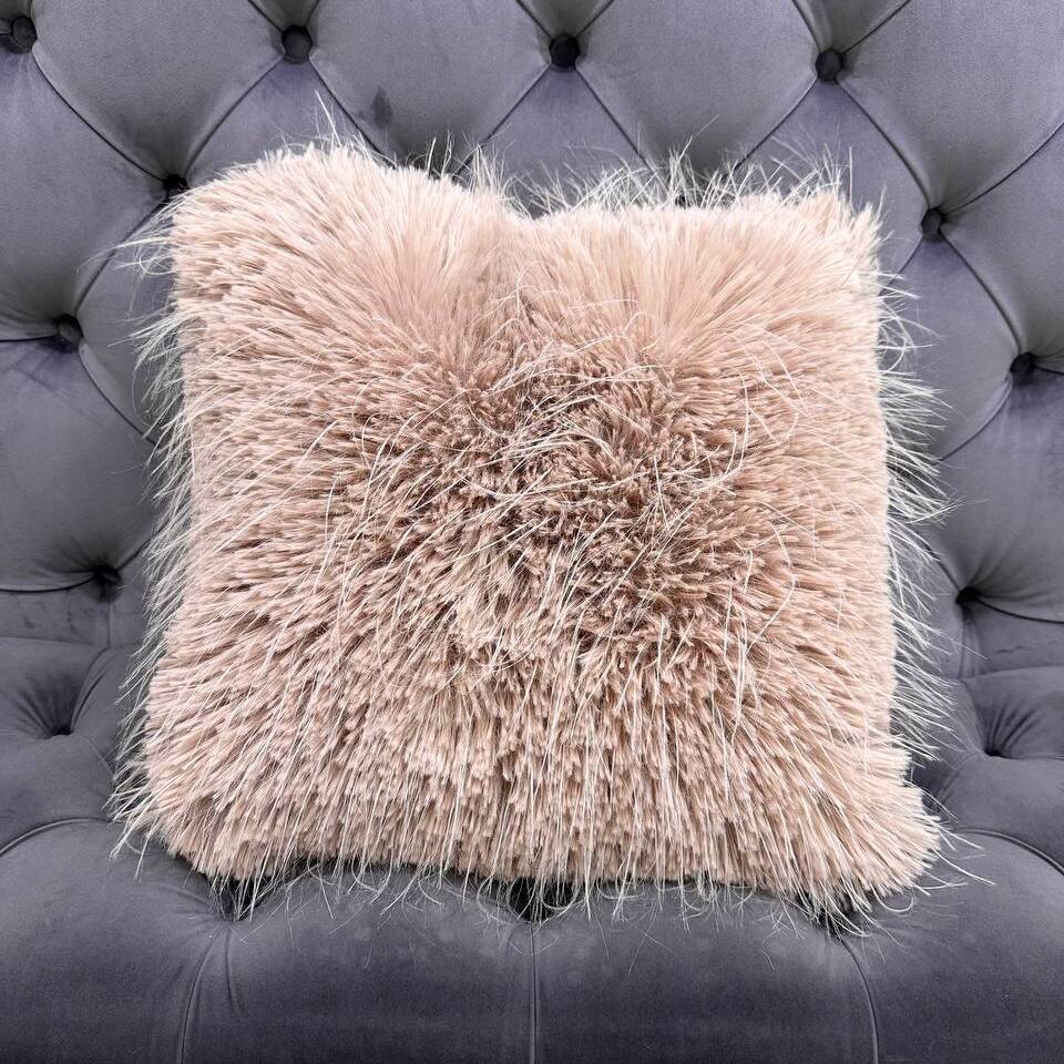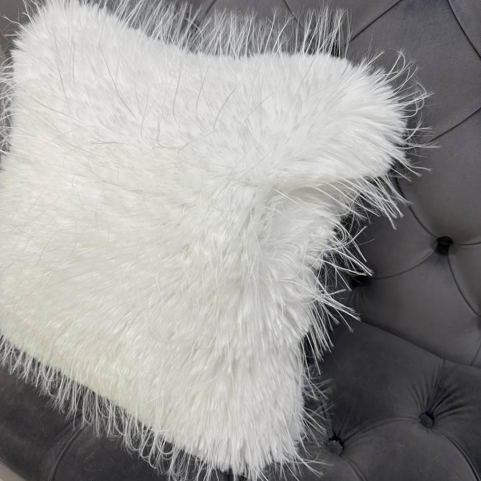Наволочка несъемная из искусственного меха Страус, длина ворса у подушки 7-8 см.