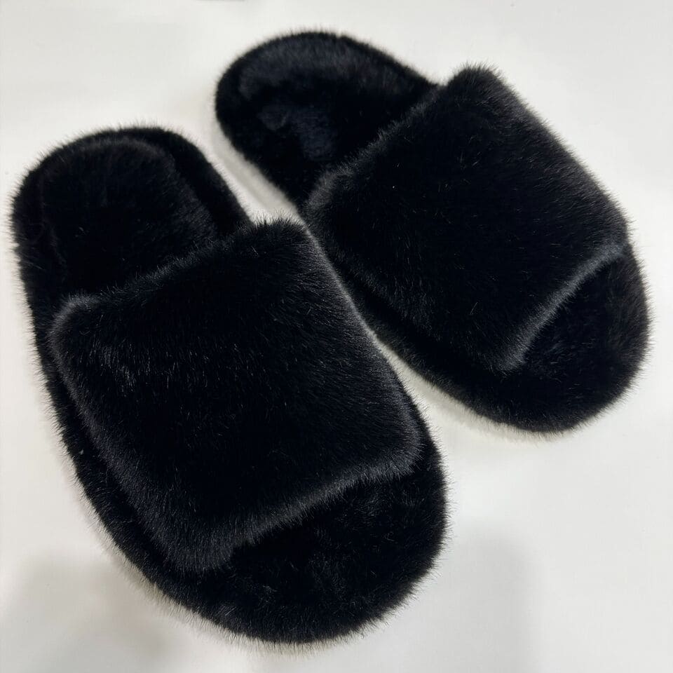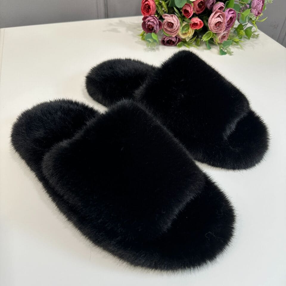 Тапочки из искусственного меха "Норка Премиум", с открытым носом (Черные, 39)