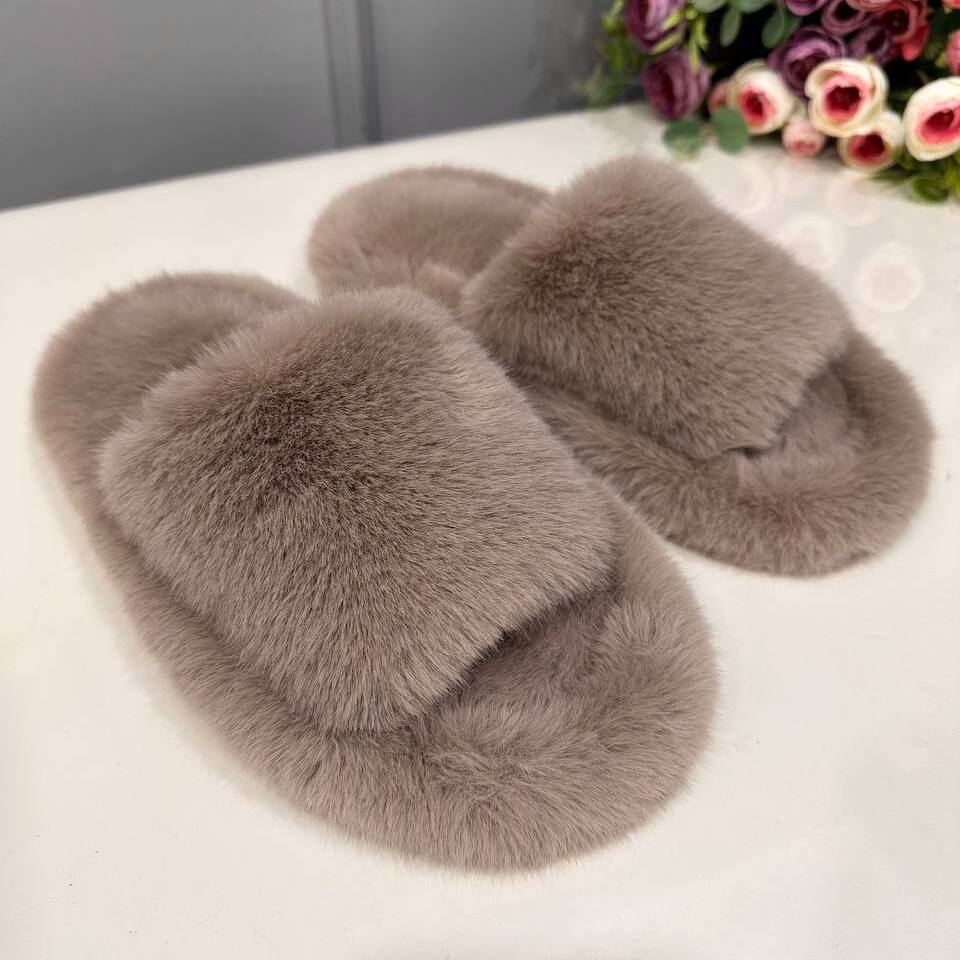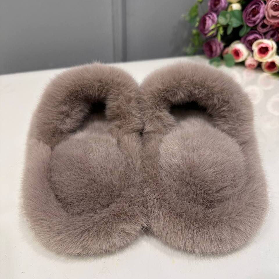 Тапочки из искусственного меха "Норка Премиум", с открытым носом (Какао, 36)