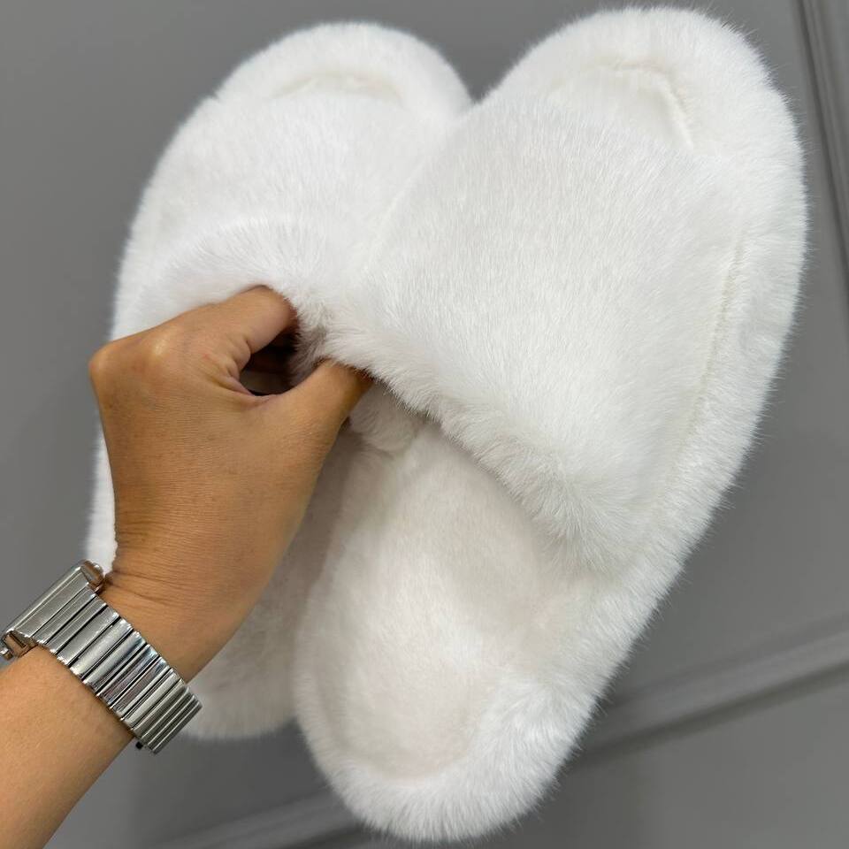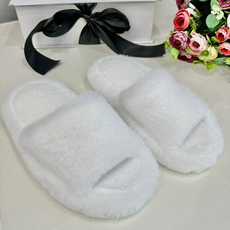 Тапочки из искусственного меха "Норка Премиум", с открытым носом (Белые, 39)