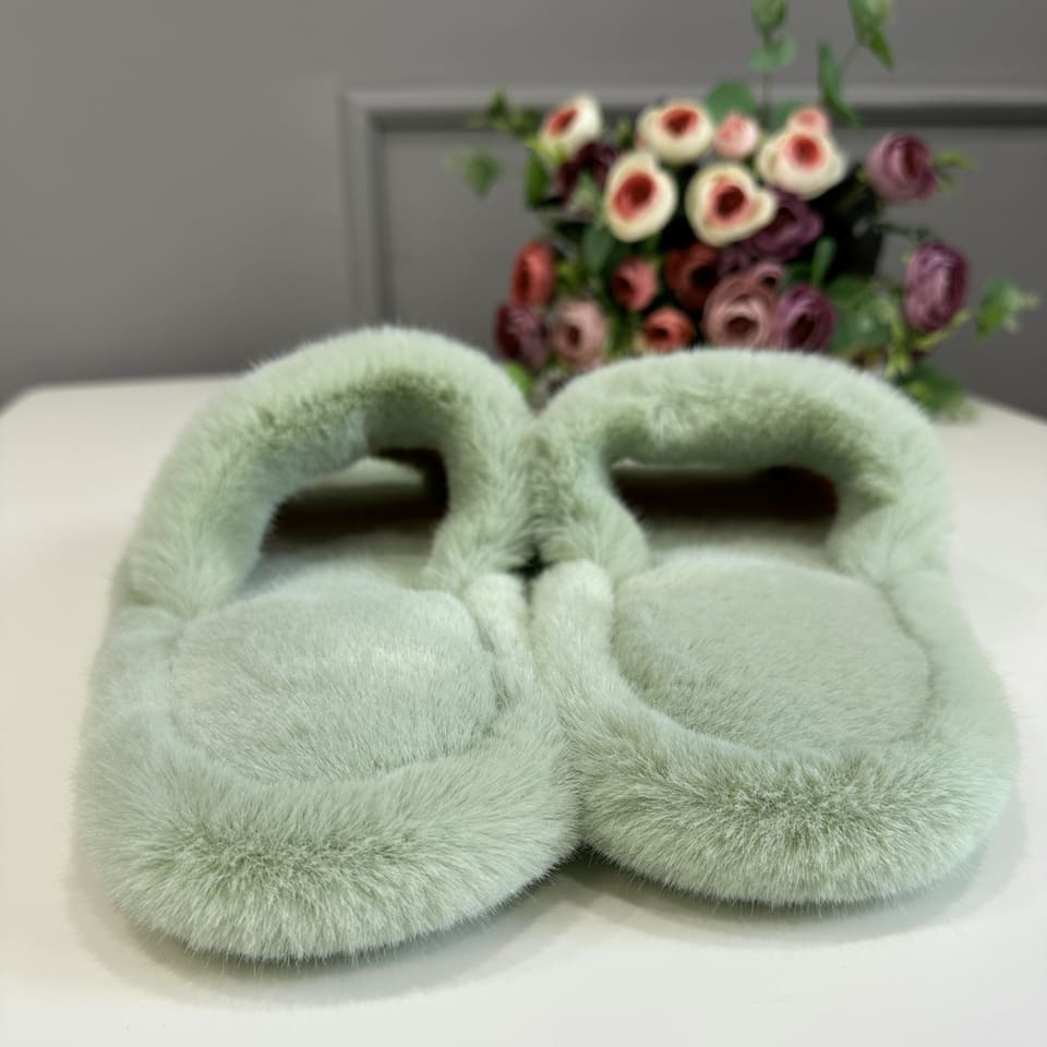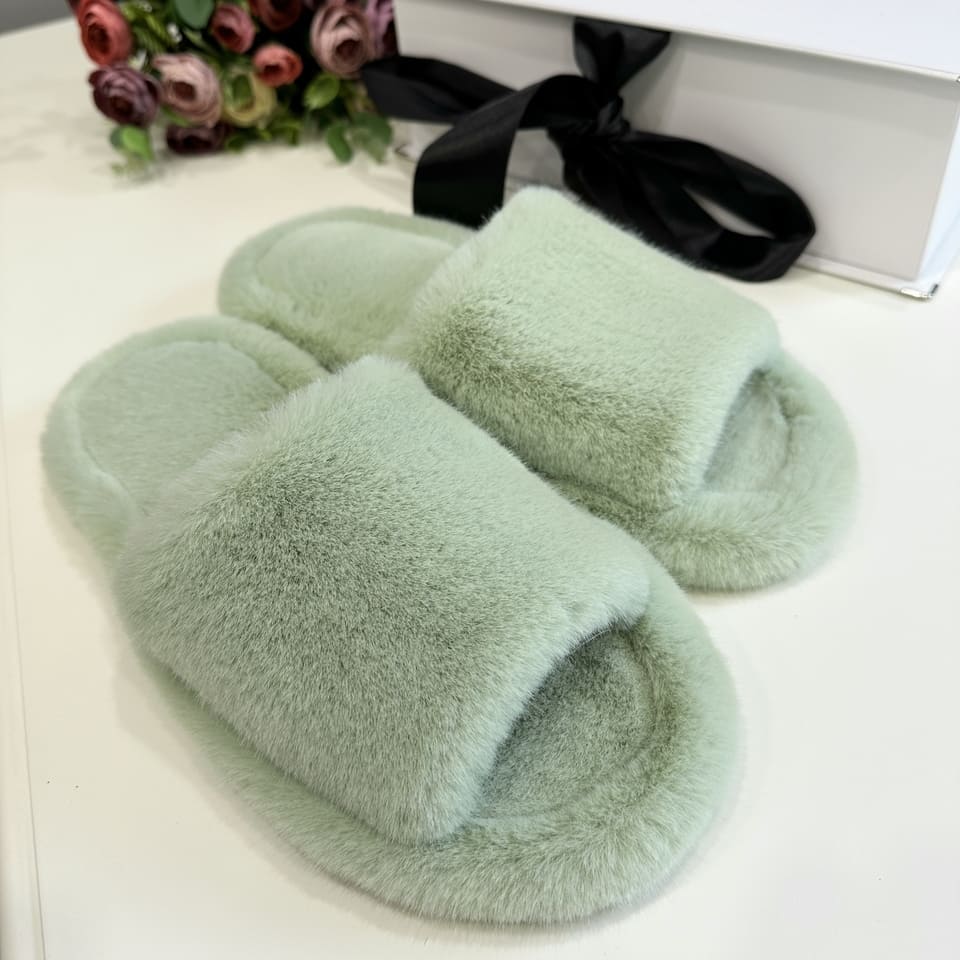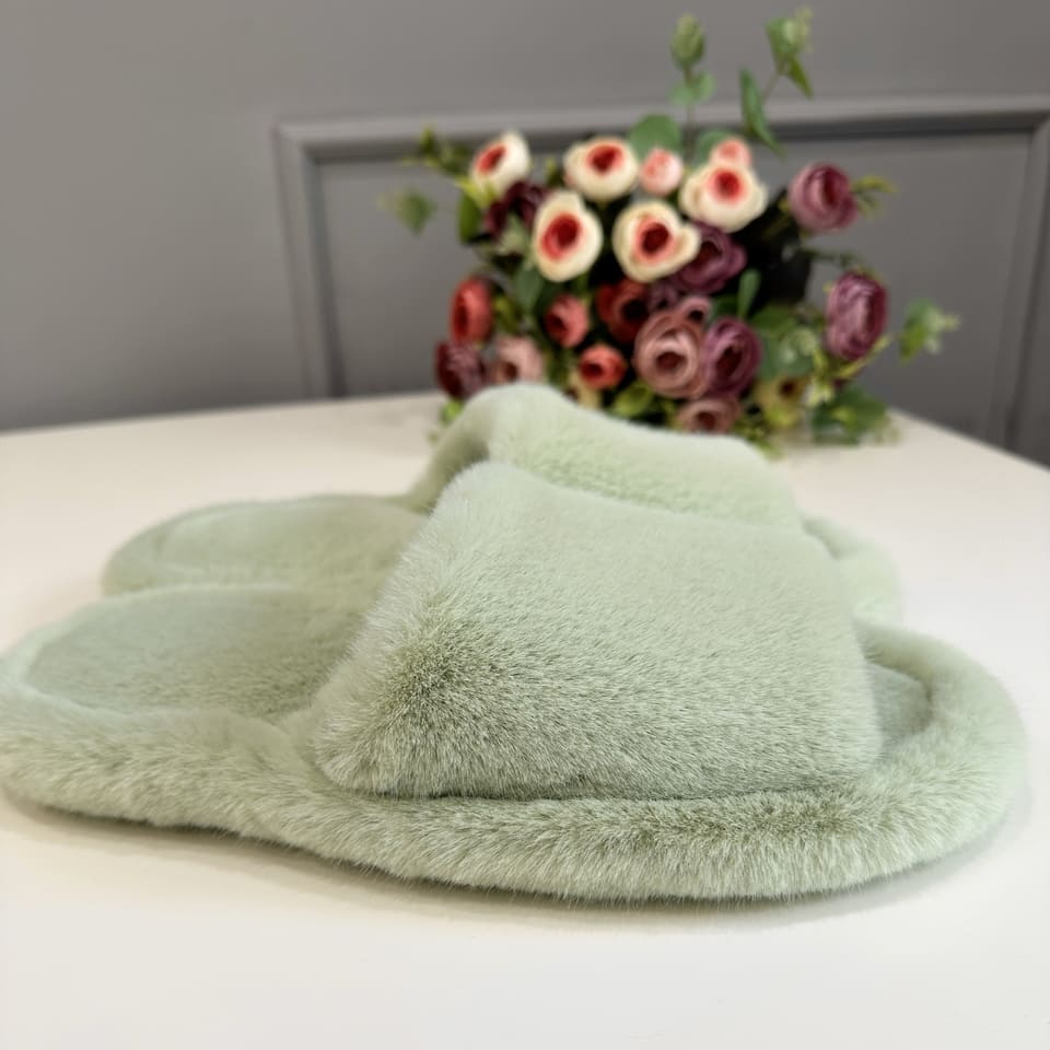 Тапочки из искусственного меха "Норка Премиум", с открытым носом (Фисташка, 41)
