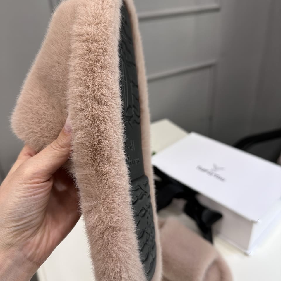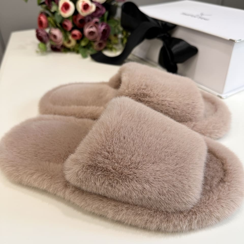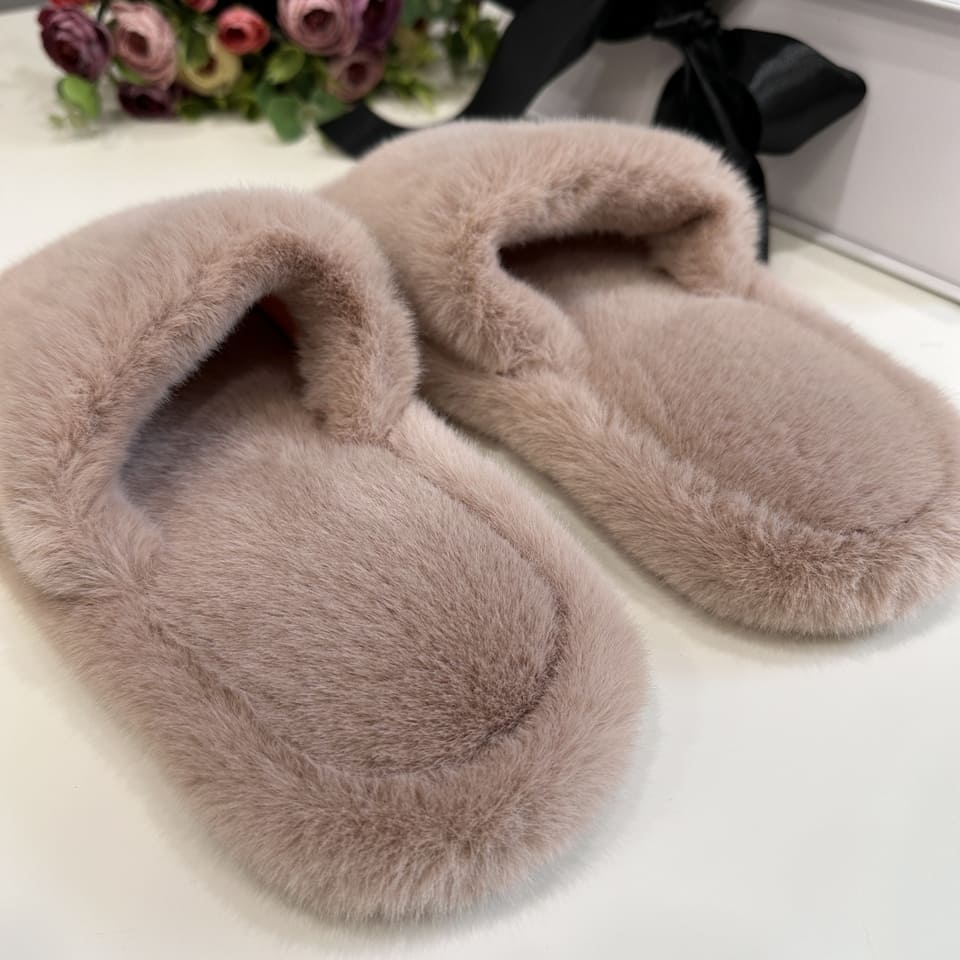 Тапочки из искусственного меха "Норка Премиум", с открытым носом (Кварцевый песок, 36)