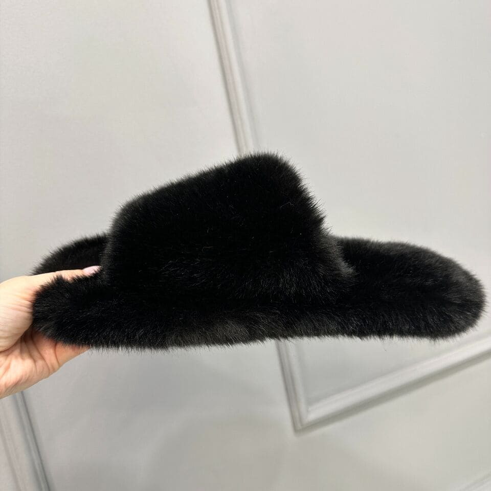 Тапочки из искусственного меха "Норка Премиум", с открытым носом (Черные, 41)