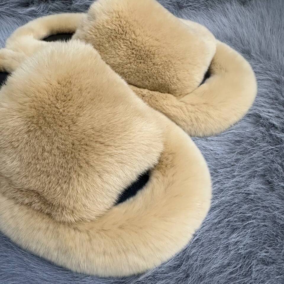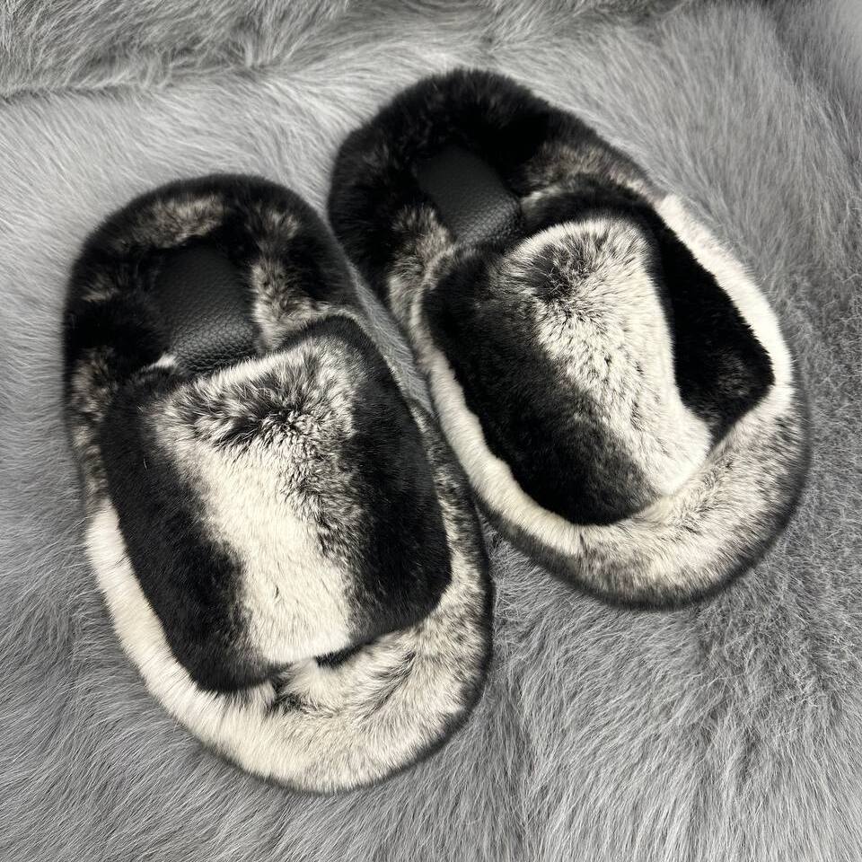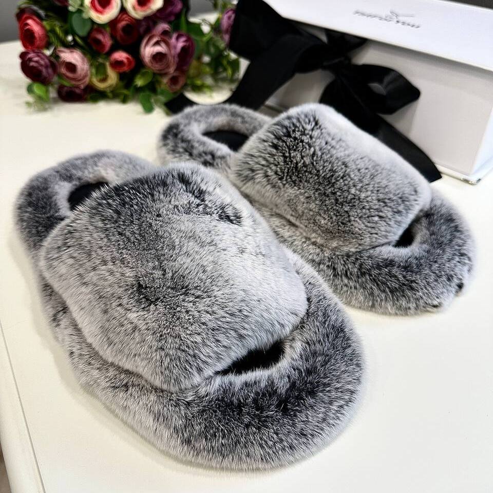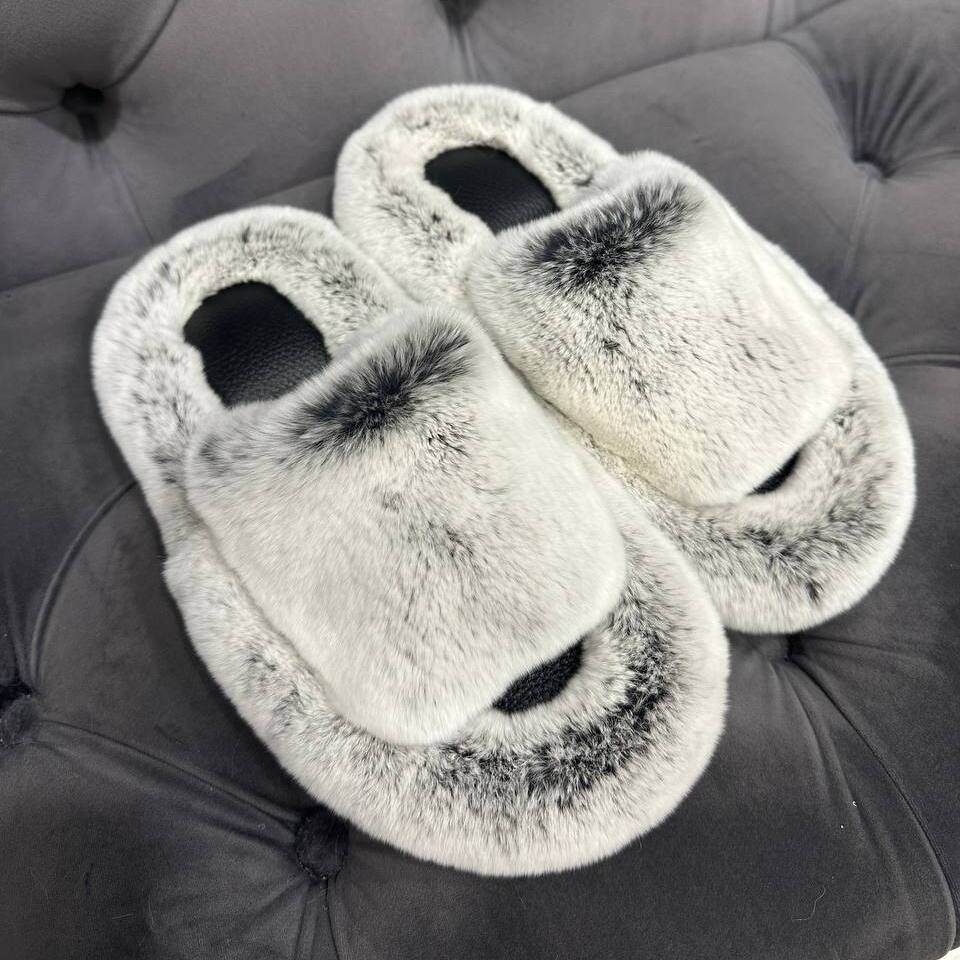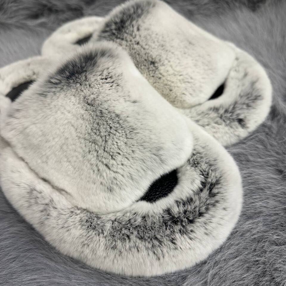 Тапочки из натурального меха кролика можно подобрать как в женских, так и в мужских размерах, создавая неповторимый Family look.