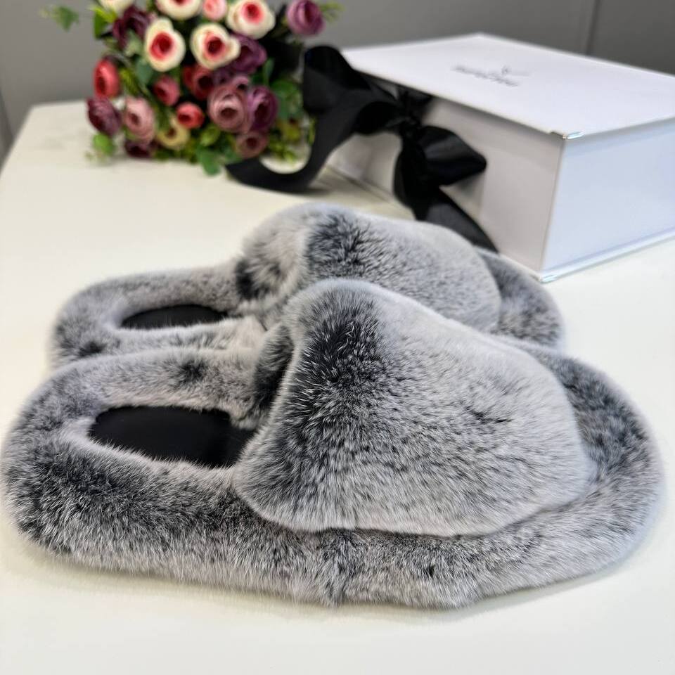 Тапочки выполнены из высококачественного меха кролика, обеспечивают Вашим ногам непревзойденный комфорт и уют в любое время года. Гибкая подошва и стелька из натуральной кожи гарантирует устойчивость на любой поверхности. А стильный дизайн и разнообразие расцветок позволят подобрать идеальную пару тапочек под любой образ.